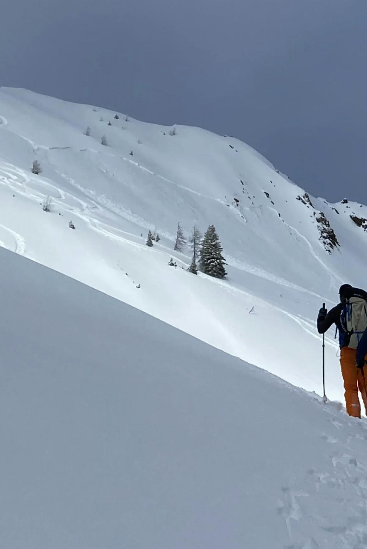 This group ski cut a slope and triggered a size 2 storm slab which they were able to avoid. Credit: MIN user ahpbjmurray