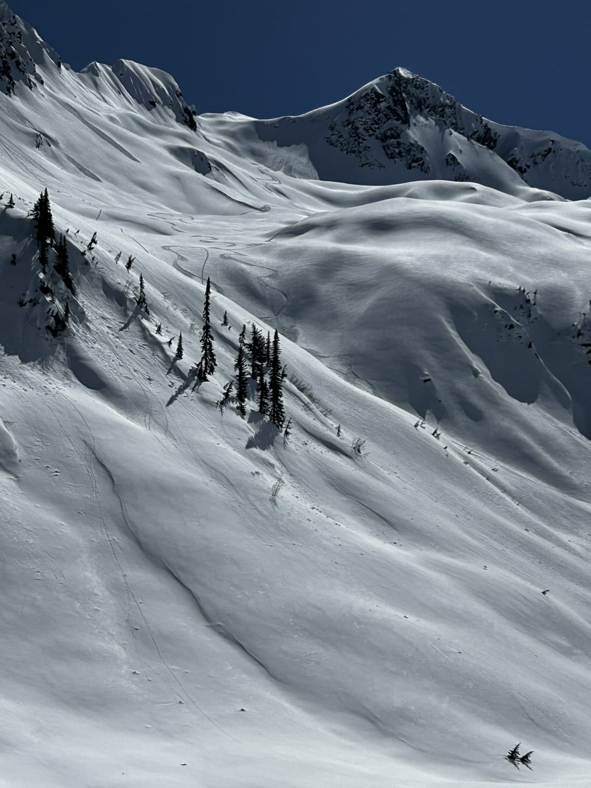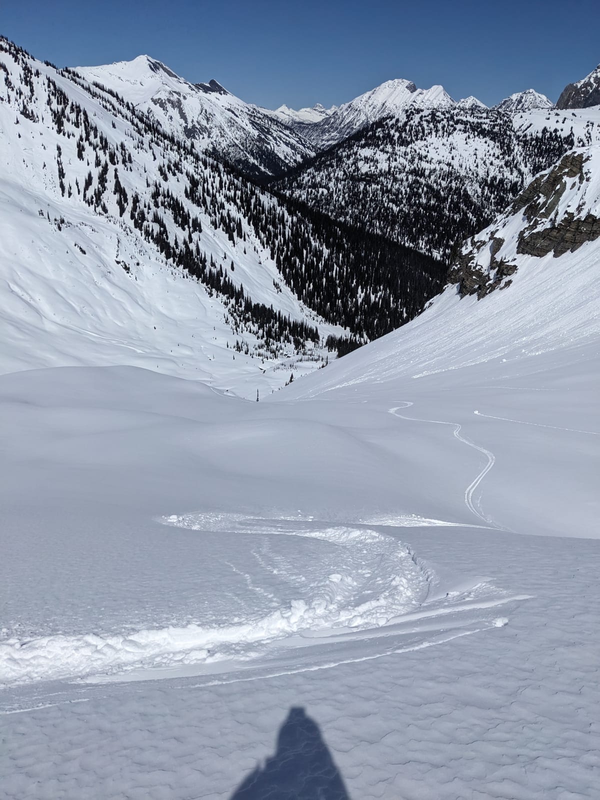 Original goal was Corbin south face with hopes of some sweet corny turns. 10am to the Col and it was clear that not enough snow remained on Corbin South and only an hour later, large wet loose was taking what was left off the face. Back up plan to Fidelity North Bowl - which was incredible!! 16-20cm of soft dry powder on top of a soft crust. Skied like waterskiing! The Bostock trail was marginal, but in a week might be snow free - but Fidelity seems like it will be great for weeks still