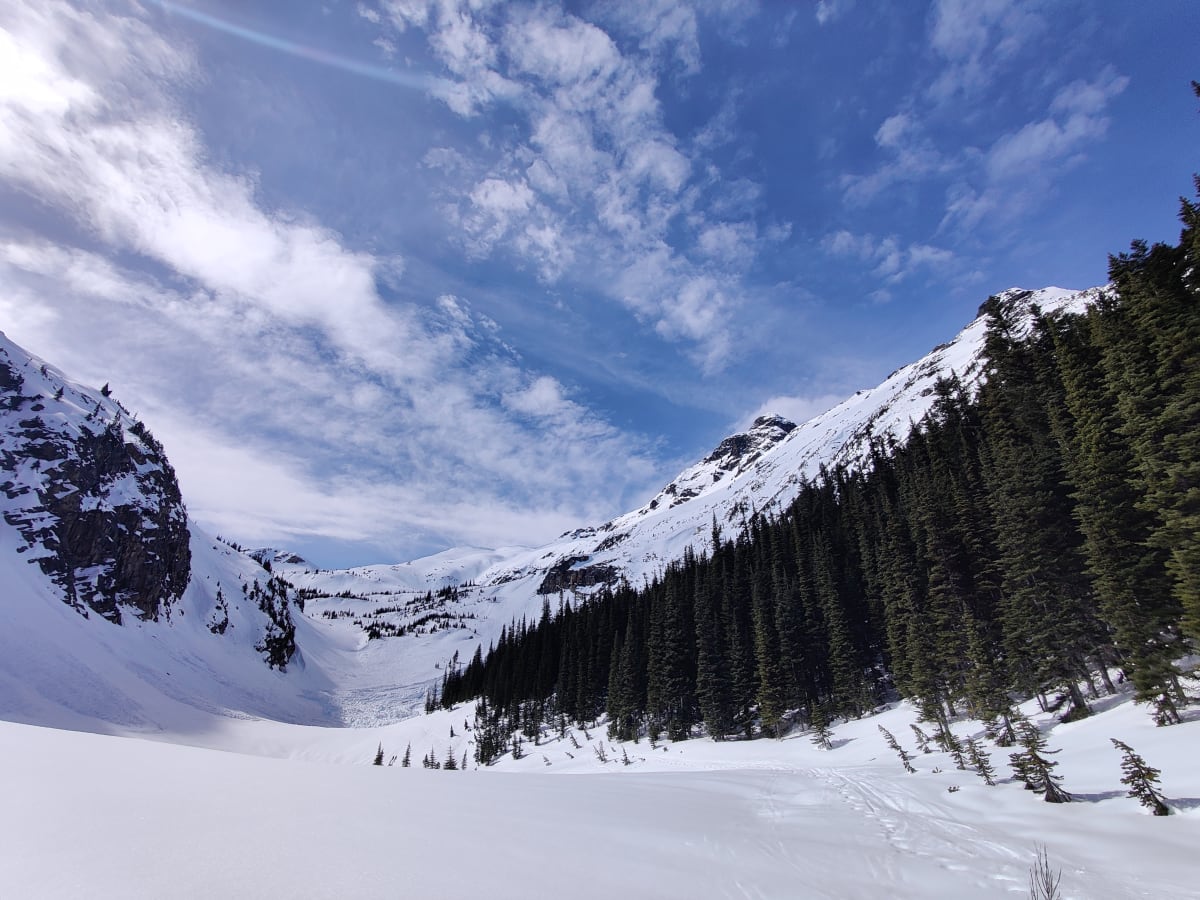Good spring melt freeze at treeline, not there yet in the alpine.