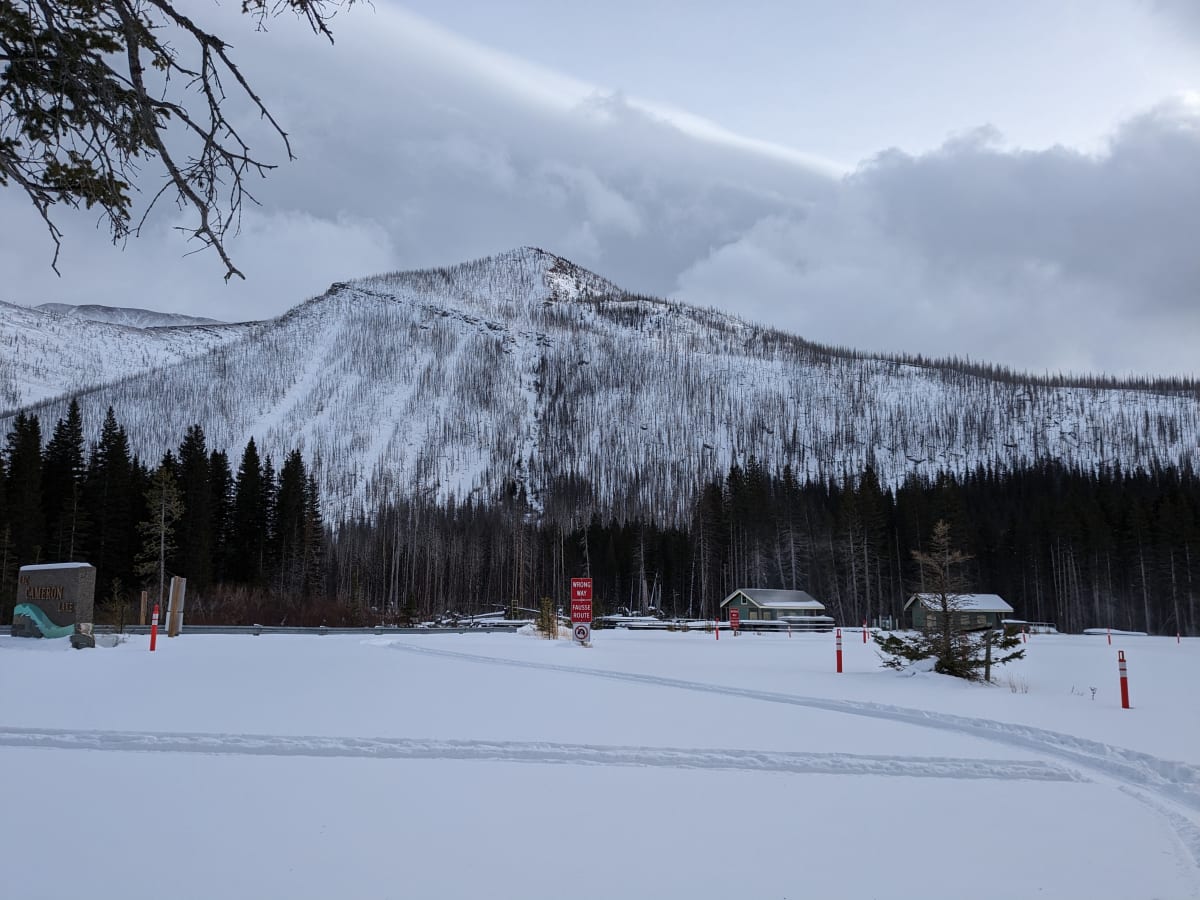 Observations up at Cameron Lake from Dec 3 confirm minimal snow, but snow coverage on the road and the Akamina Pass trail are good. The ice is 10-12cm thick just off shore with a layer of slush/water above in some places. Use caution. 30cm of snow on the ground at the lake but winds have scoured many slopes to rock and have deposited it into gullies. We skinned up to 1850m between Akamina Pass and Forum Ridge and found 30-80cm of weak unsupportive snow with overall poor travel conditions (other than the Akamina Pass Trail) and hazardous ski conditions due to skis sinking to the ground and hitting all the burned stumps.
