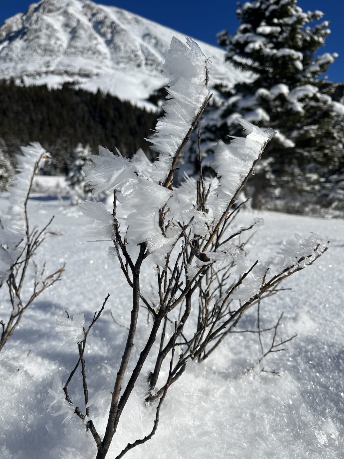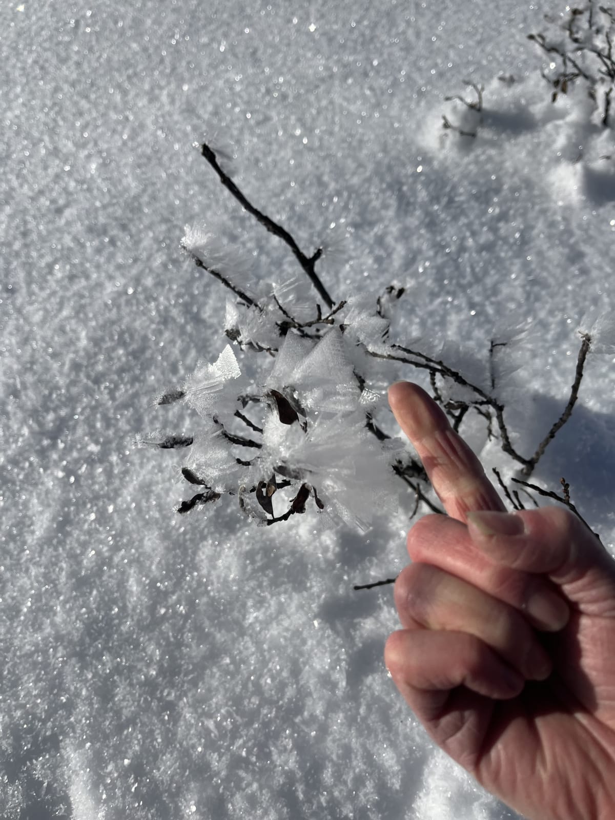 Lots of hoar frost in the parking area of Highwood Pass today (up to 2cm plates). We hiked the cirque and in hindsight would have carried snowshoes to use at TL+ (punchy after solar warming). HS variable depending on wind effect from 10cm to up to 55cm w varying depth of mostly non supportive crust. I found the pack to be unconsolidated but there was a lack of facets where I checked. While it’s pretty … I gave myself a good foot massage on the sharks once ATL.