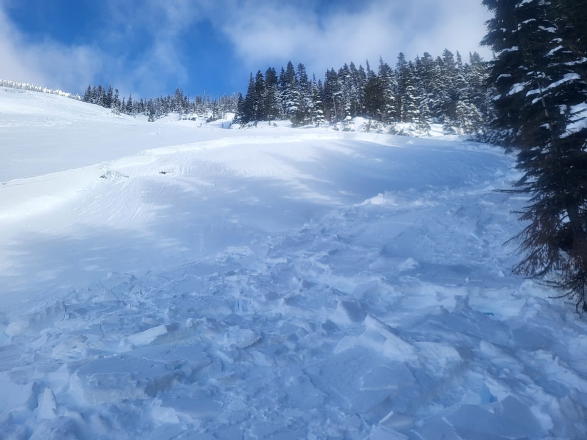 Where the slab was initiated, the crown line was approximately 40-50cm thick and propagated out into a wind loaded pocket of 1.5-1.75m deep over some rocks. Approximate slide was 60m across and ran for about 60m. slightly longer than it was wide. Very obvious wind slab, likely slide on the January crust.