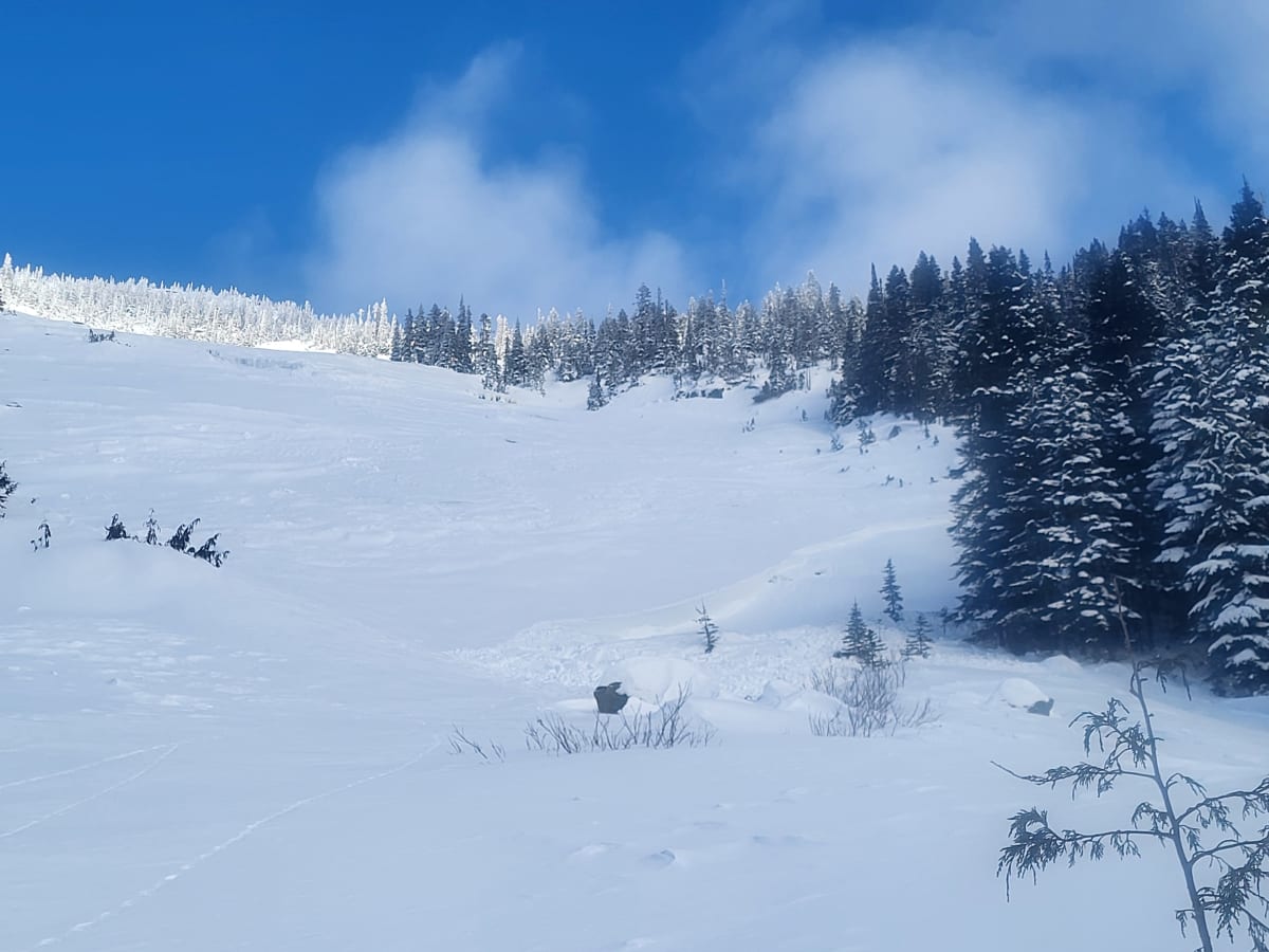 Skiers debriefed in the trees, descended safely and back to the Iago/Zupjock notch and onwards to Iago.