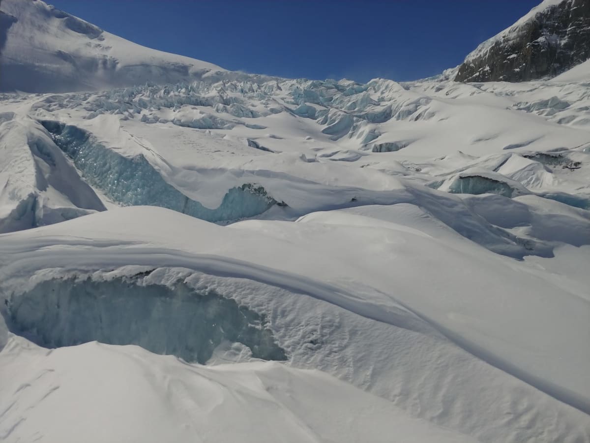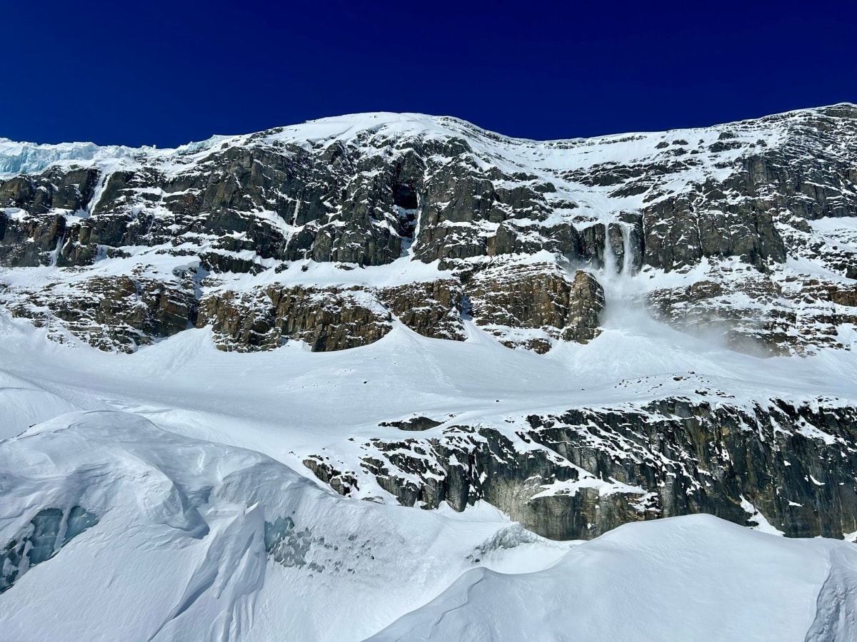 Was attempting to ascend Athabasca Glacier to Mt Kitchener. By 10AM in the morning, the overhead hazard from Snowdome was releasing avalanches that extended across the normal up-path that proceeds under the seracs. See photos.