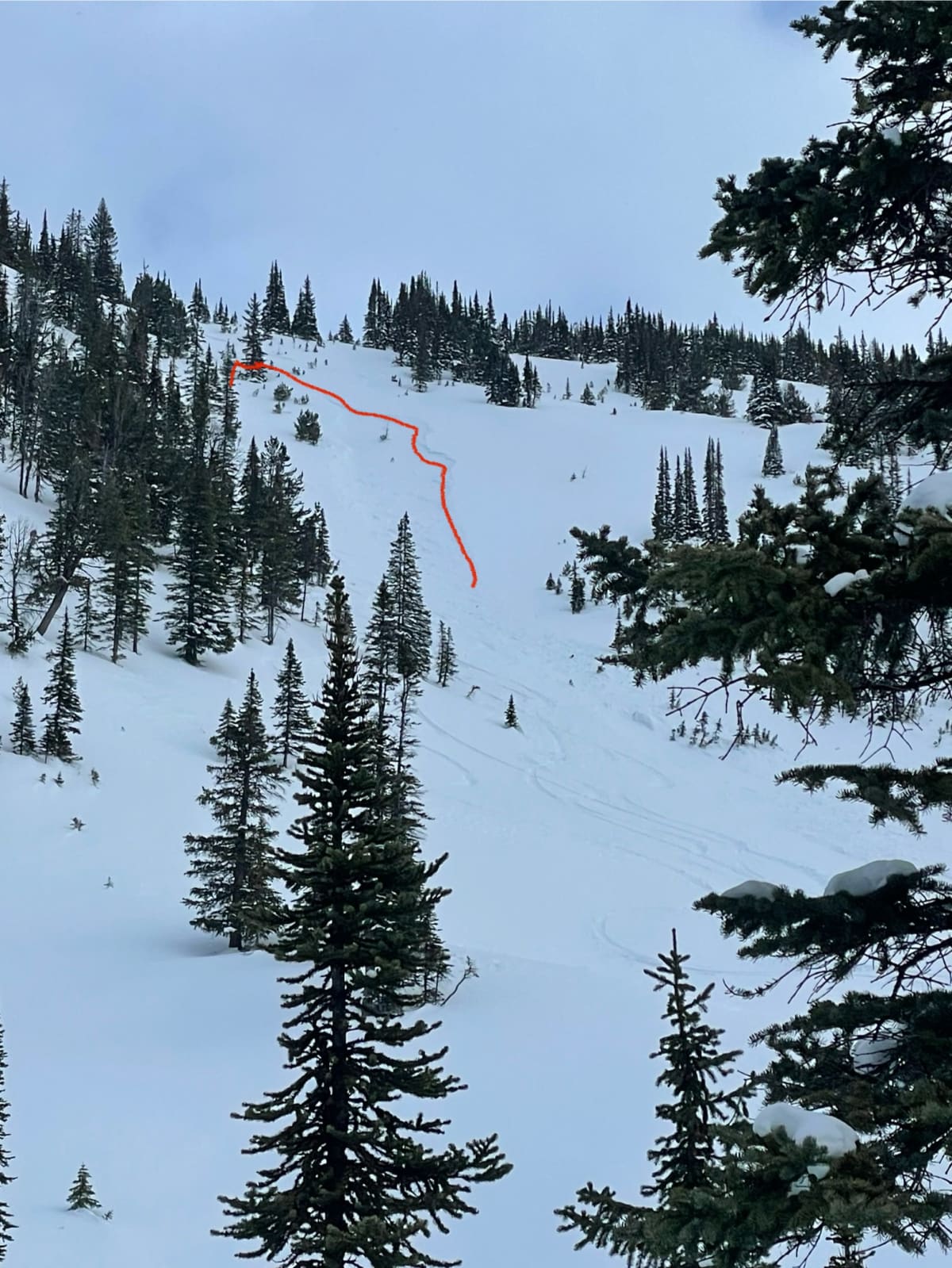 Spent a cautious day roaming around the drainages south of golden on the dogtooth. Snow was surprisingly light for how warm the temps have been but variable conditions ranging from wind effect to deeper pockets depending on the aspect. A crust can be felt on upward travel but mostly unnoticeable on the ski down. In isolated sheltered areas some whumpfing sounds were heard, on the skin track up hand shears proved to be reactive 20cms down on the crust we could feel.