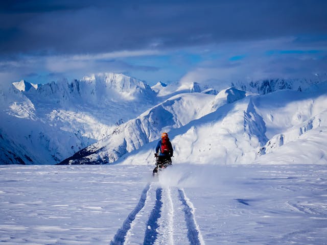 The spectacular terrain of the Yukon is enjoyed by skiers and snowmobilers alike. Photo: Ryan Buhler
