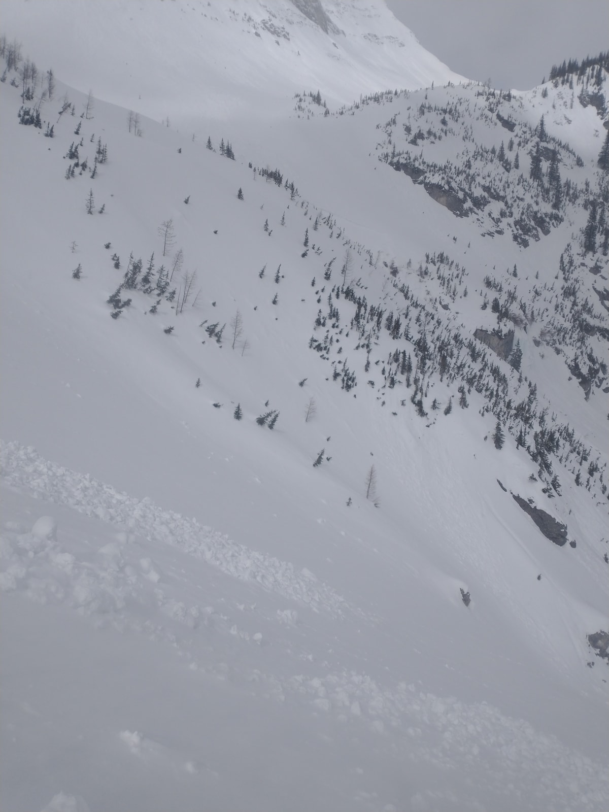 7cm over last couple days sloughed and pinwheeled yesterday wrecking the skiing on steep features but made for good skiing on lower angled polar slopes. Quite windy but not much snow for transport limited slab development to thin wind slabs just below Lee features on north aspects. Easy skinning and good travel. Decent turns on purple and hero's was good up high and low but middle was full of debris. Cornices large on purple bowl but happy things were cool this morning. Great freeze down to road level overnight.