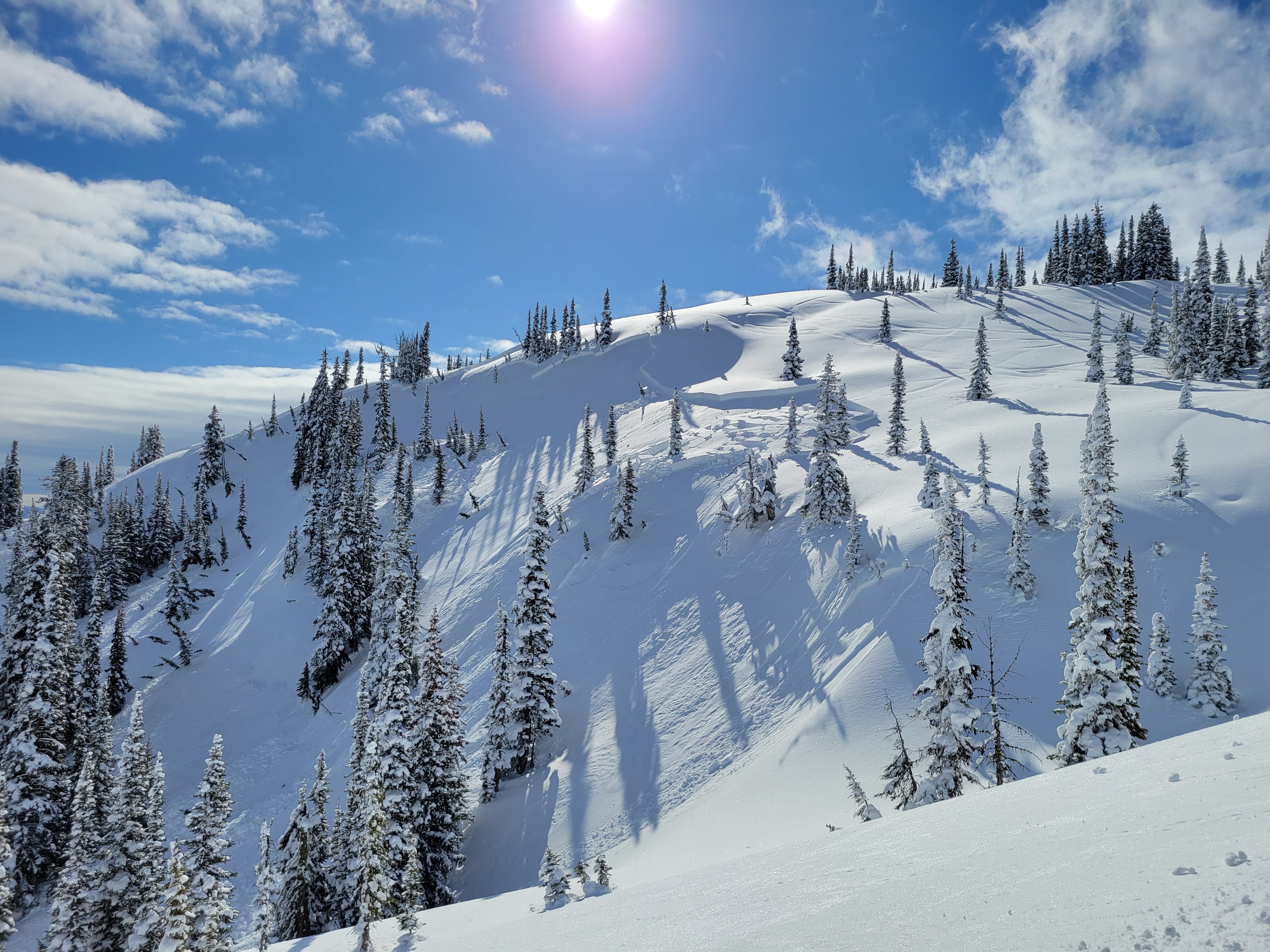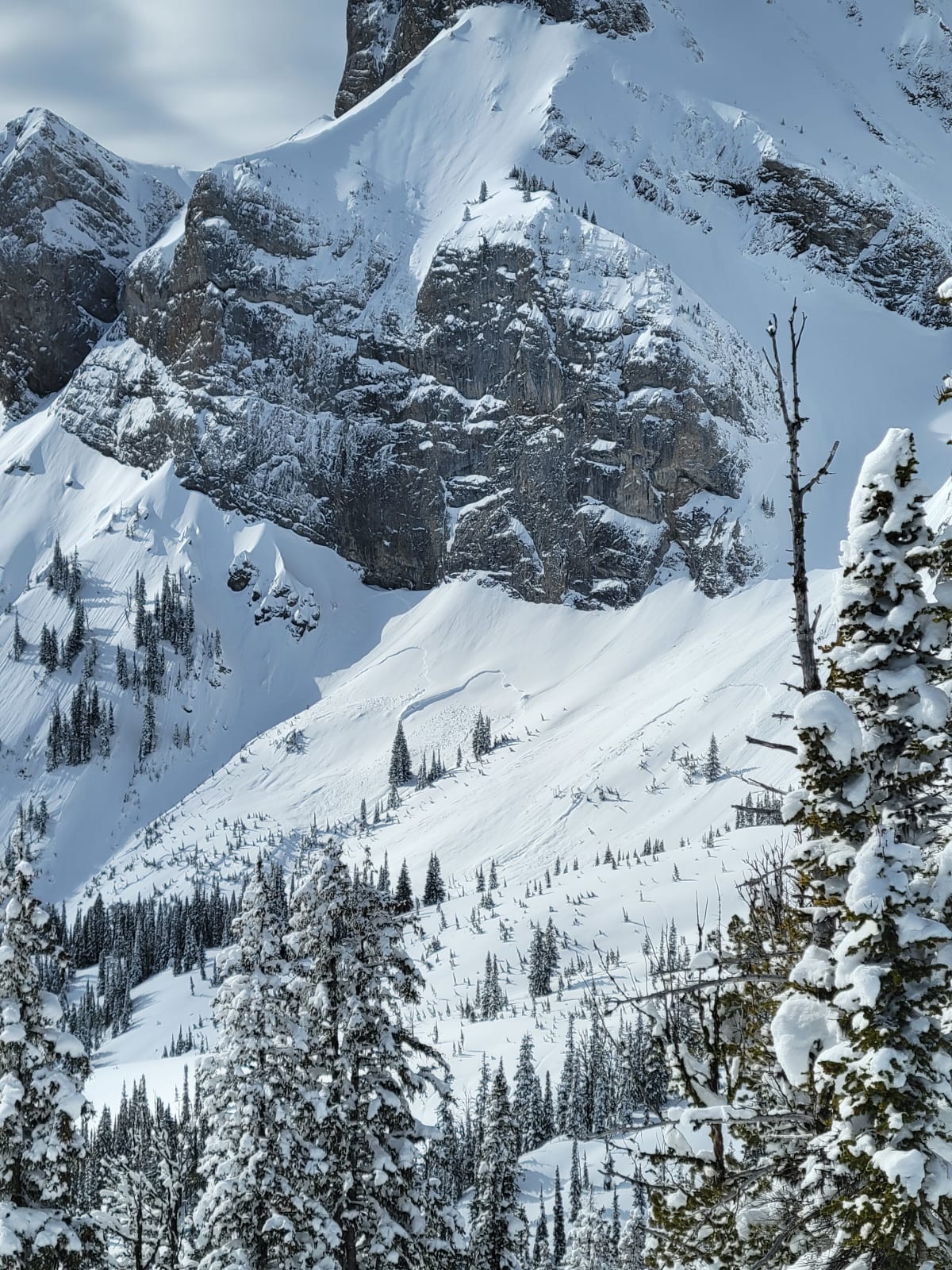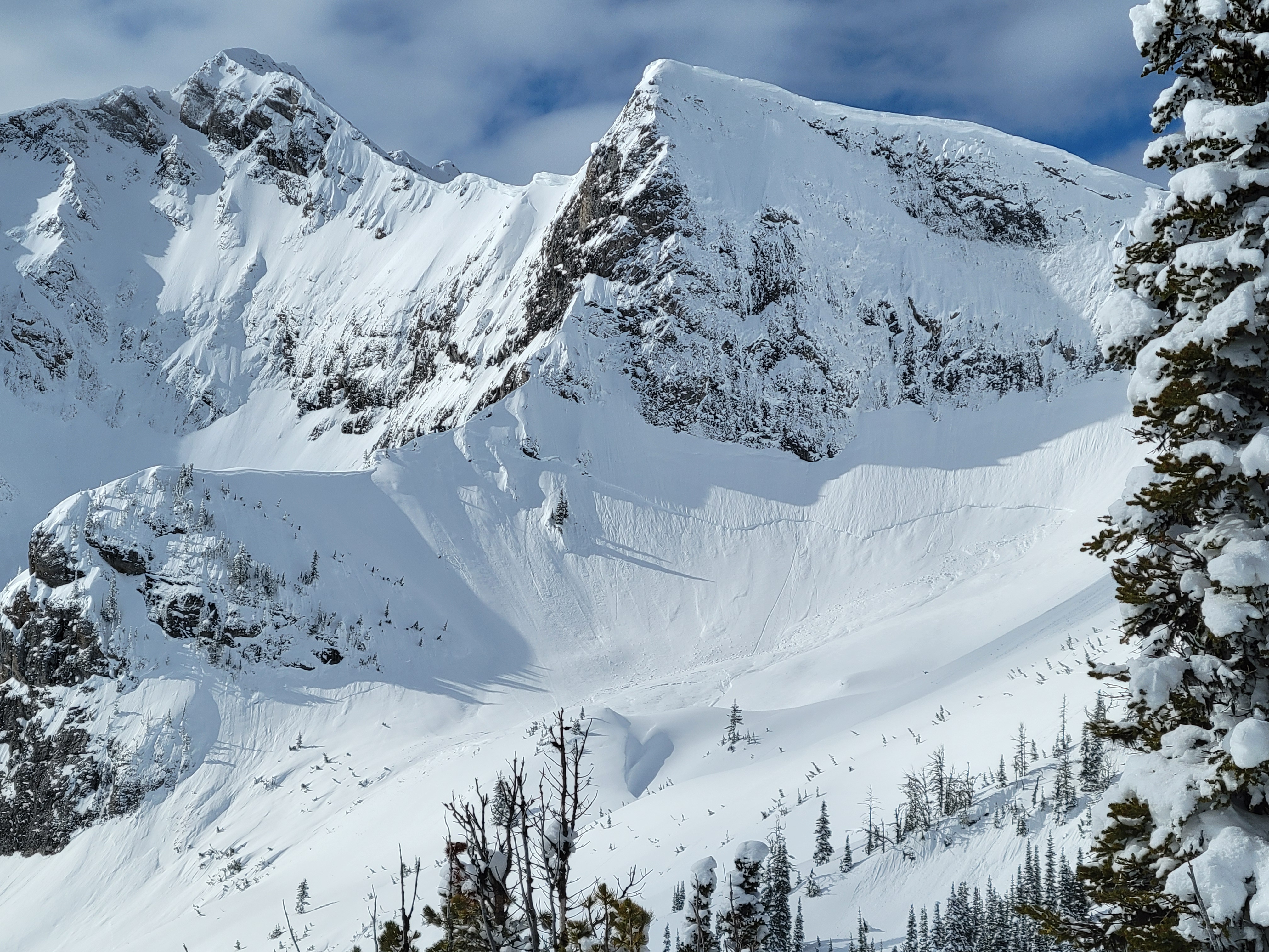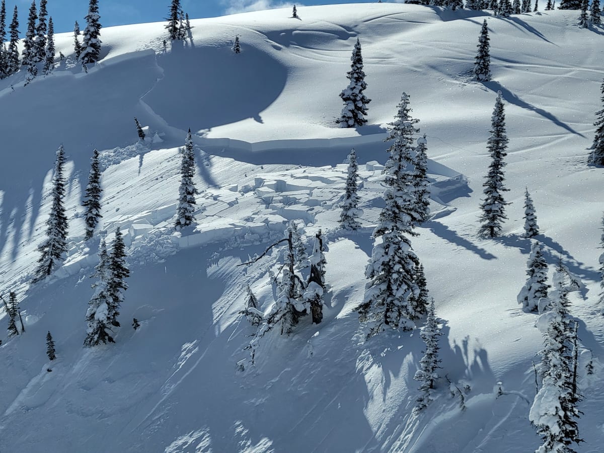 Avalanche remote triggered by snowmobile from accross a gully.