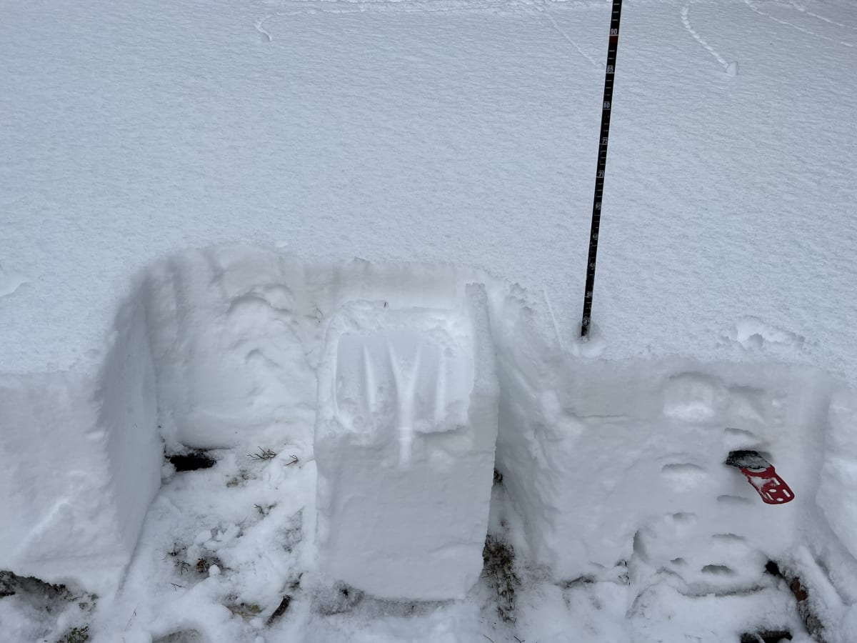 Not much accumulation up high. Didn’t bother to pull skins. HS 45 @ 2290m. Of note, active logging on Bootleg fsr.