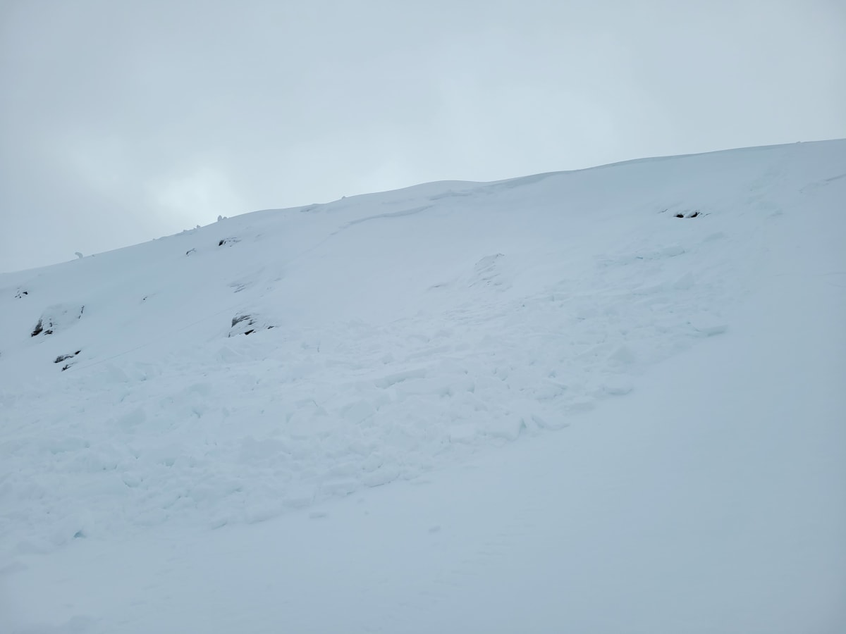 Morning poke into backcountry next to Powder King. Surface snow was low-moderate density powder that was less wind effected than we expected. Observed a natural size 1 avalanche that likely released in the last 12-24 hrs on a steep windward slope (see Avalanche section). Coverage up high is slowly getting better and there is good skiing to be had, but willows lower down are still lying in wait.
