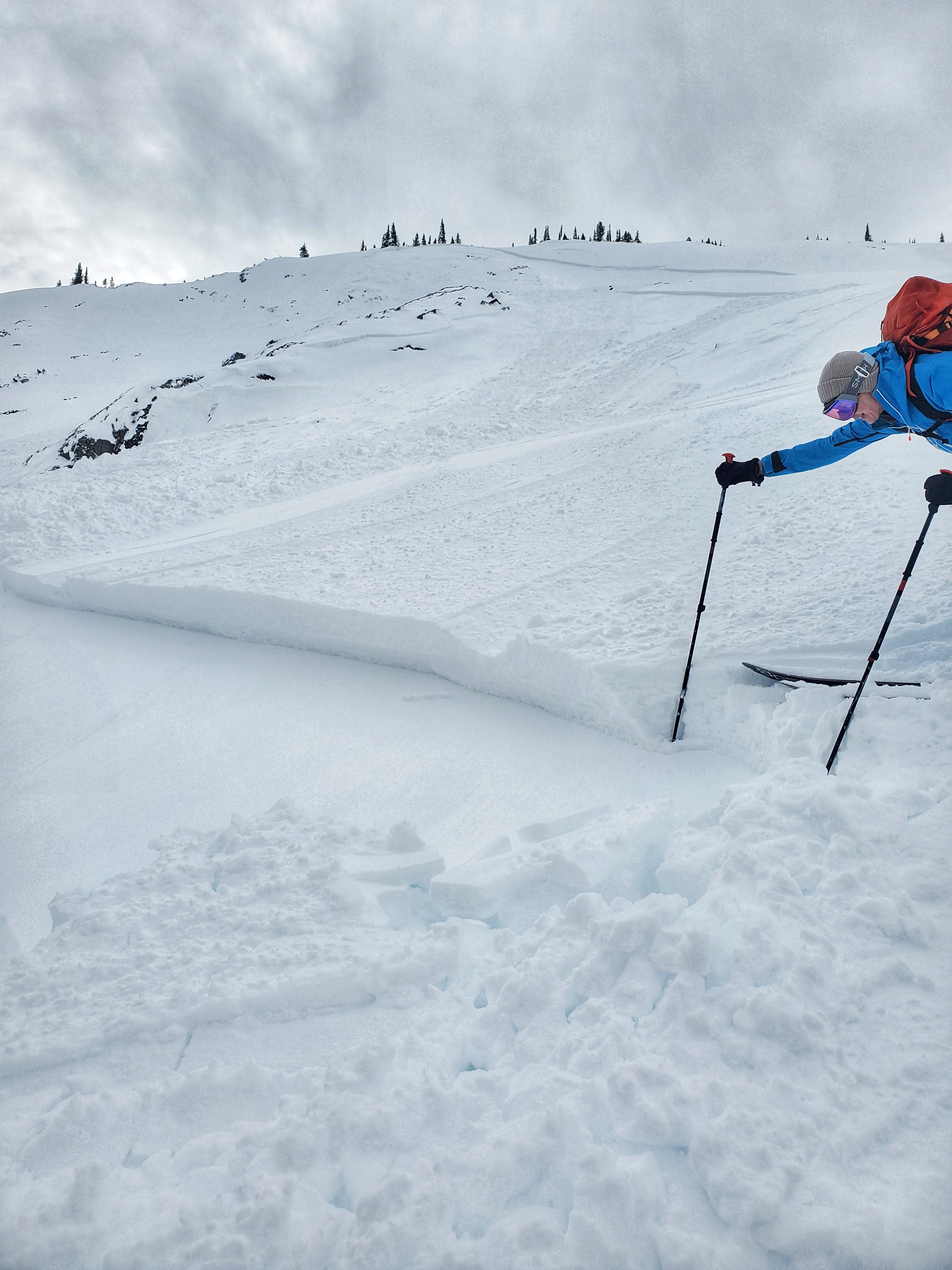 ...windloaded, steep, rocky feature. The sliding surface looked like a really smooth surface, our first day out and didn't go investigate but some windslab or crust.