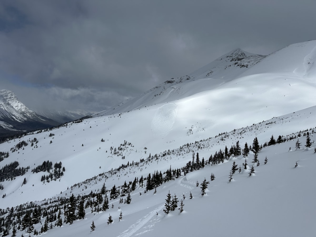 Weak layer failure traveled across alpine bowl feature covering a distance of ~800m.