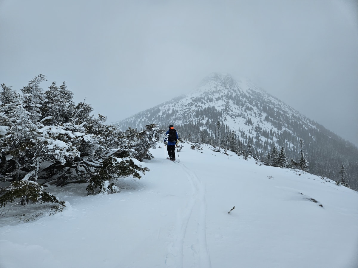 Heavily wind affected slopes in the alpine on all aspects. Extensive wind transport providing for deep powder. Cohesion of some surface snow observed. No avalanche activity witnessed. Wind gusts and sustained high winds near ridges. Depth at location 120cm. After this storm cycle excellent powder conditions will be up there but first 1.5km of the uptrack is icy and challenging. Open creeks still in lower drainage areas. Early season conditions including hidden hazards persist at all elevations.