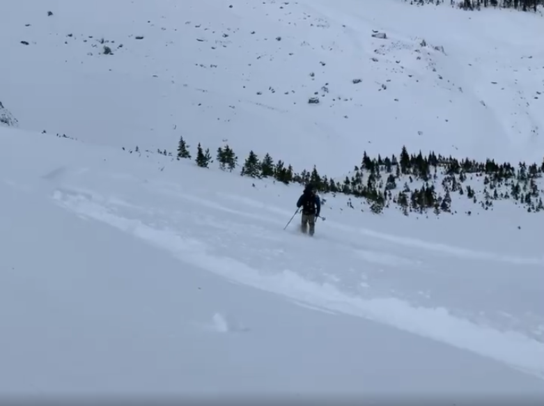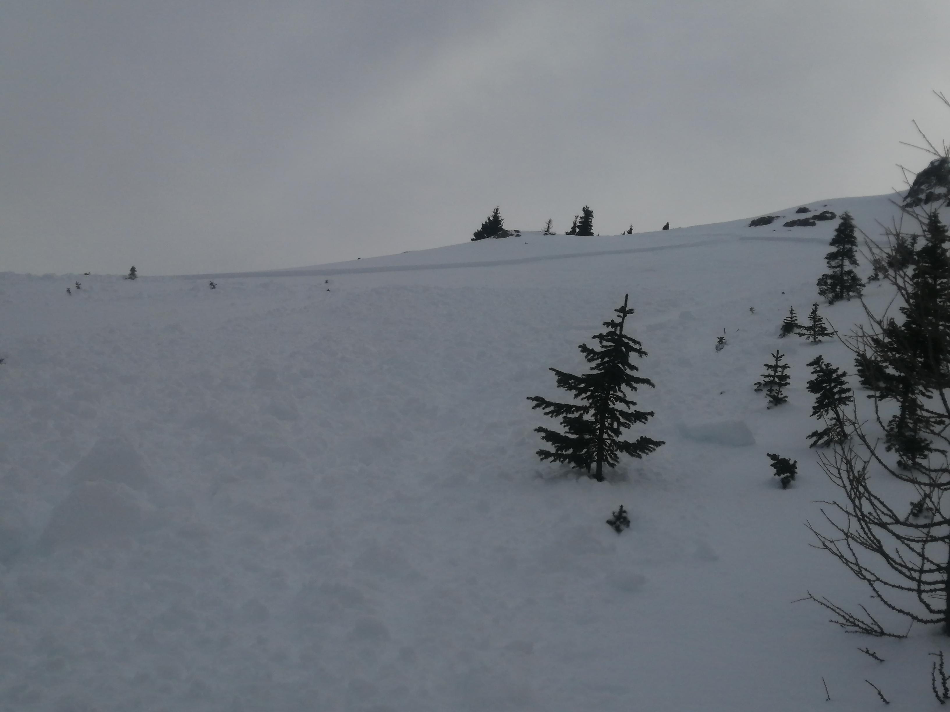 Good early season conditions at Harvey with ~30cm depth snow. On the skin up, a crown was observed in one of the chutes off the front face of the ridge. Snow at the top of the ridge felt uniform with no obvious crusts. Watched a group of 4 ride Curveball without issues. Chose to ride the chute to the skier's right of Curveball. Skier attempted a ski cut at the top of the run with no effect-however the skier was not experienced with ski cutting. Skier began to ride, and triggered a size 1-1.5 avalanche on second turn. Skier was knocked down by the avalanche and carried in a sitting position about 50m. Skiers' torso remained above the snow, and they were able to dig themself out when the avalanche stopped. Skier was able to traverse left into Curveball chute and skied out from there.