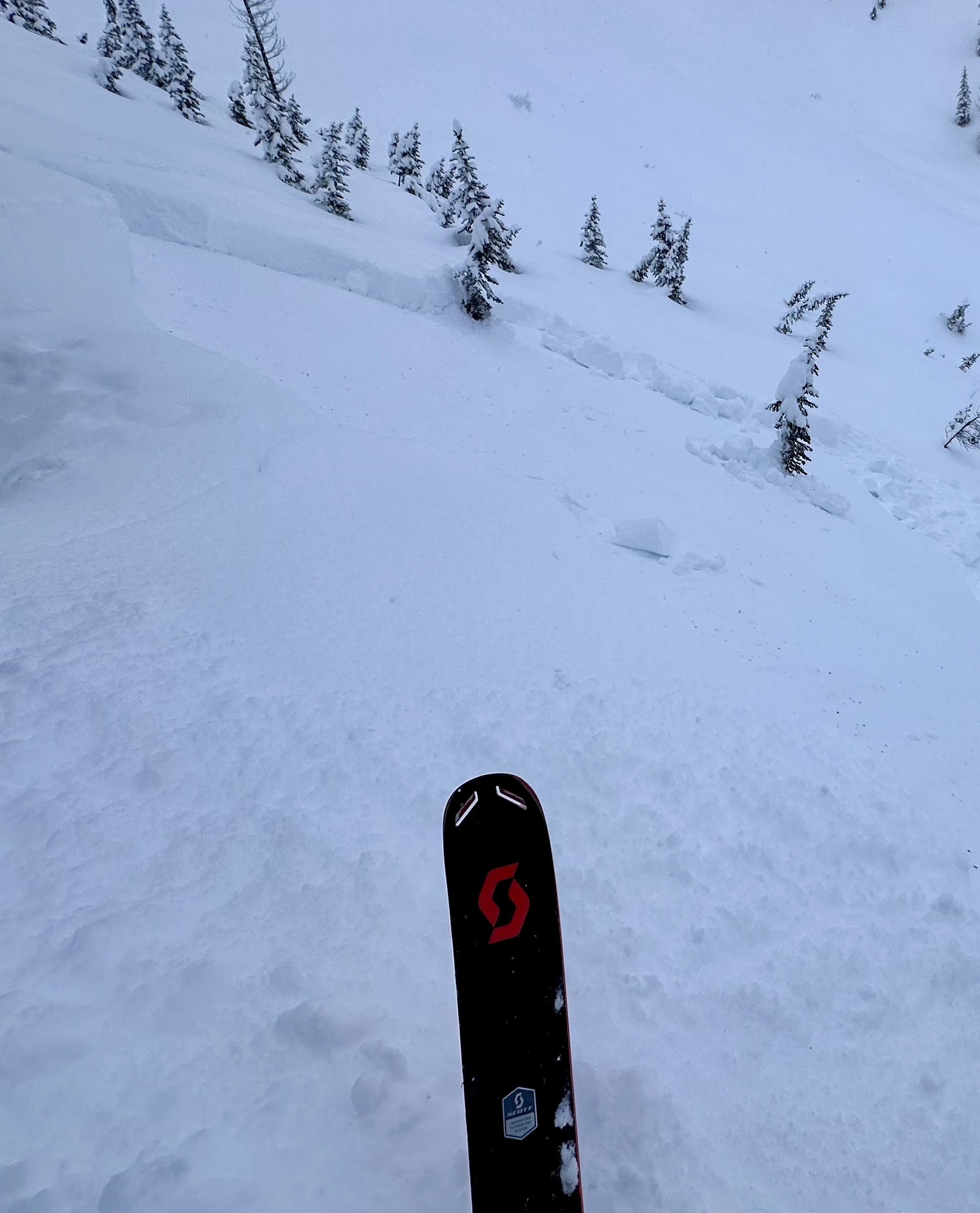2. Some regularly performing avalanche paths had not slid recently so there is definitely overhead hazard lingering.