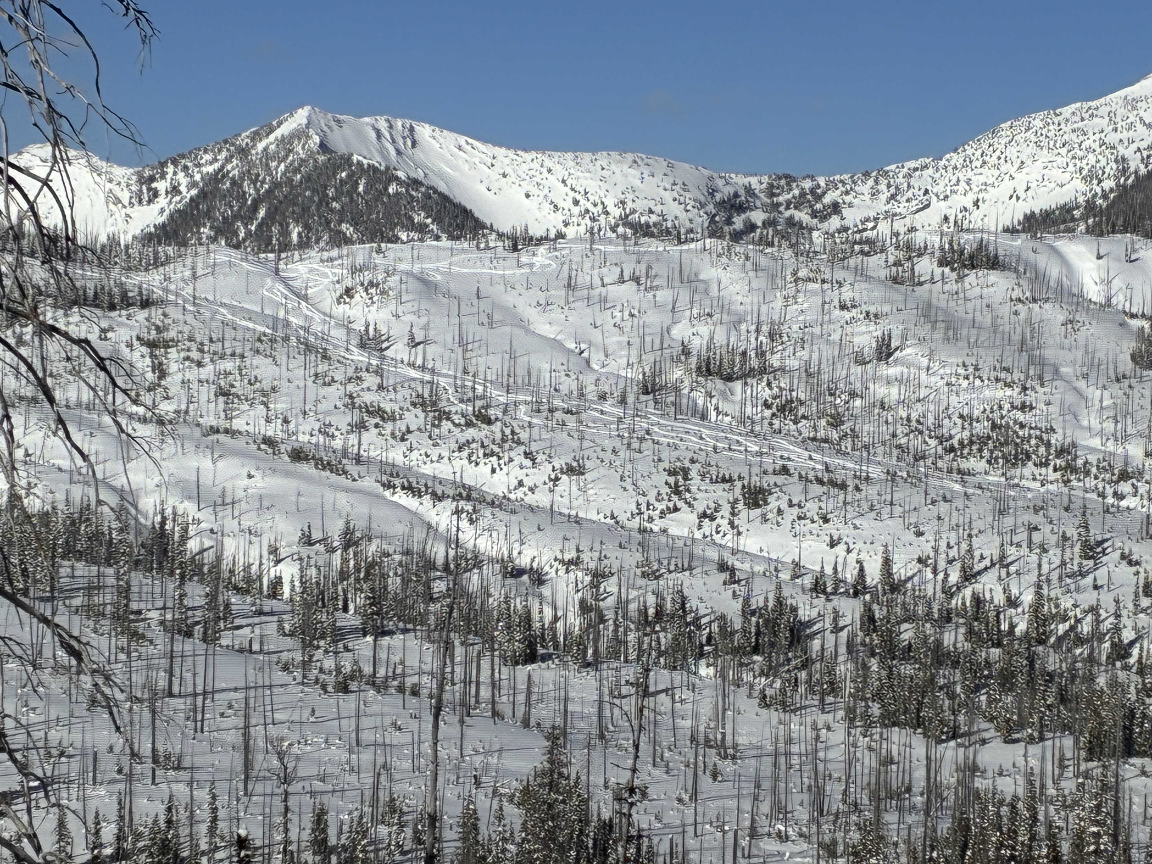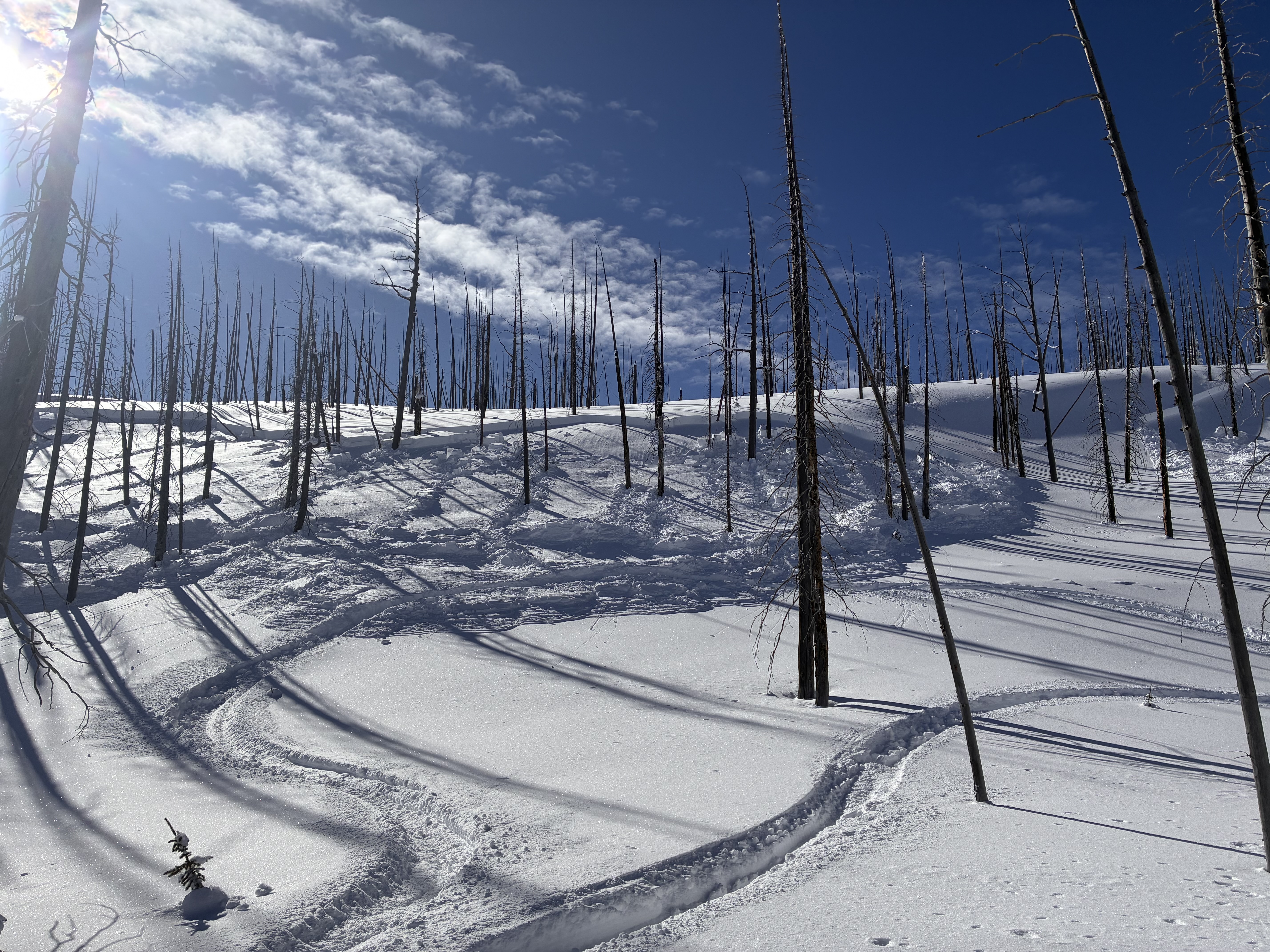 Amazing day riding with friends. Several natural avalanches observed 20-50 cm crowns on convex rolls and steeper wind loaded terrain. Also had a remote trigger on a slope from riding along the ridge top. Saw a few larger slides in the alpine but most avalanches were at tree line in sheltered areas. Frequent settlements when regrouping. Very touchy so stuck to low angle terrain.