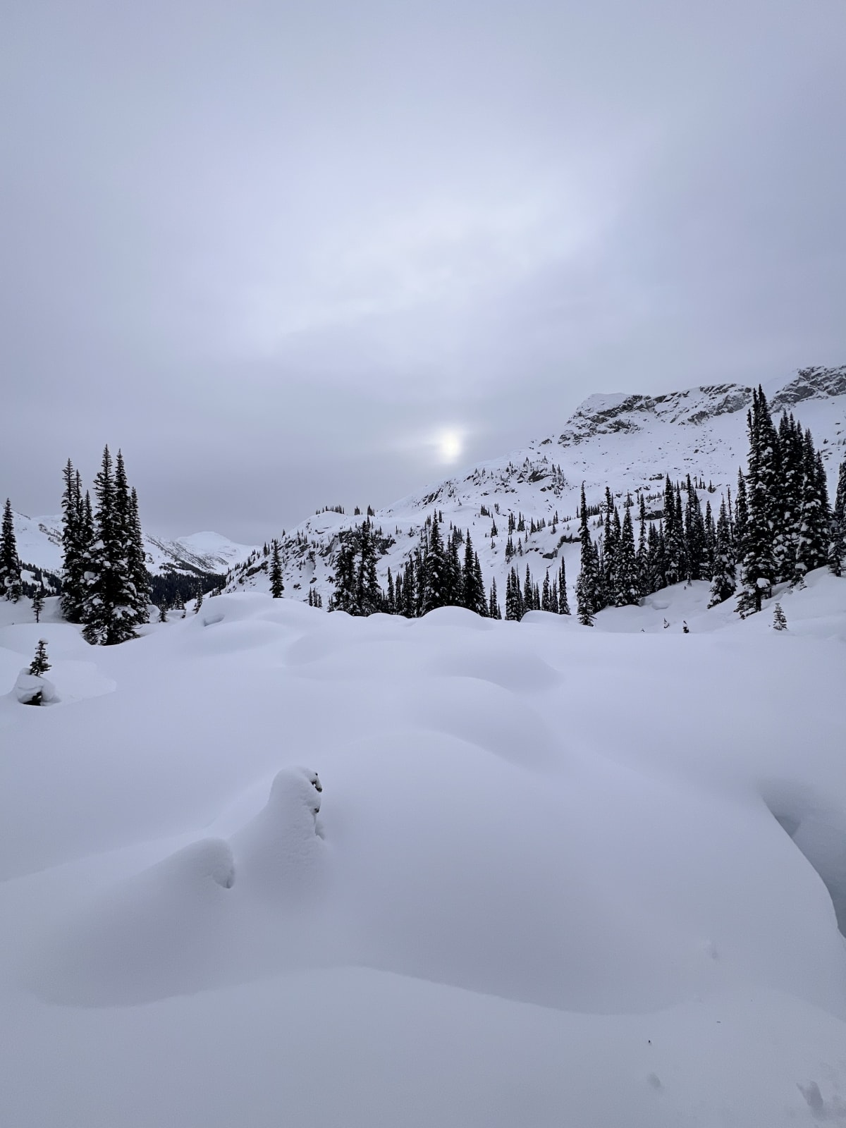 No avalanches observed but coverage was low. Rocks, creek holes, and sparse wind swept alpine terrain needed to be factored into navigation and descent decisions.