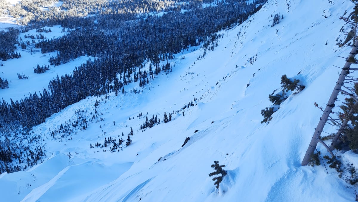 Much of the snow on the north side of the ridge was wind affected, but still found pockets of buried surface hoar down about 30cm where it hadn't been scoured yet.