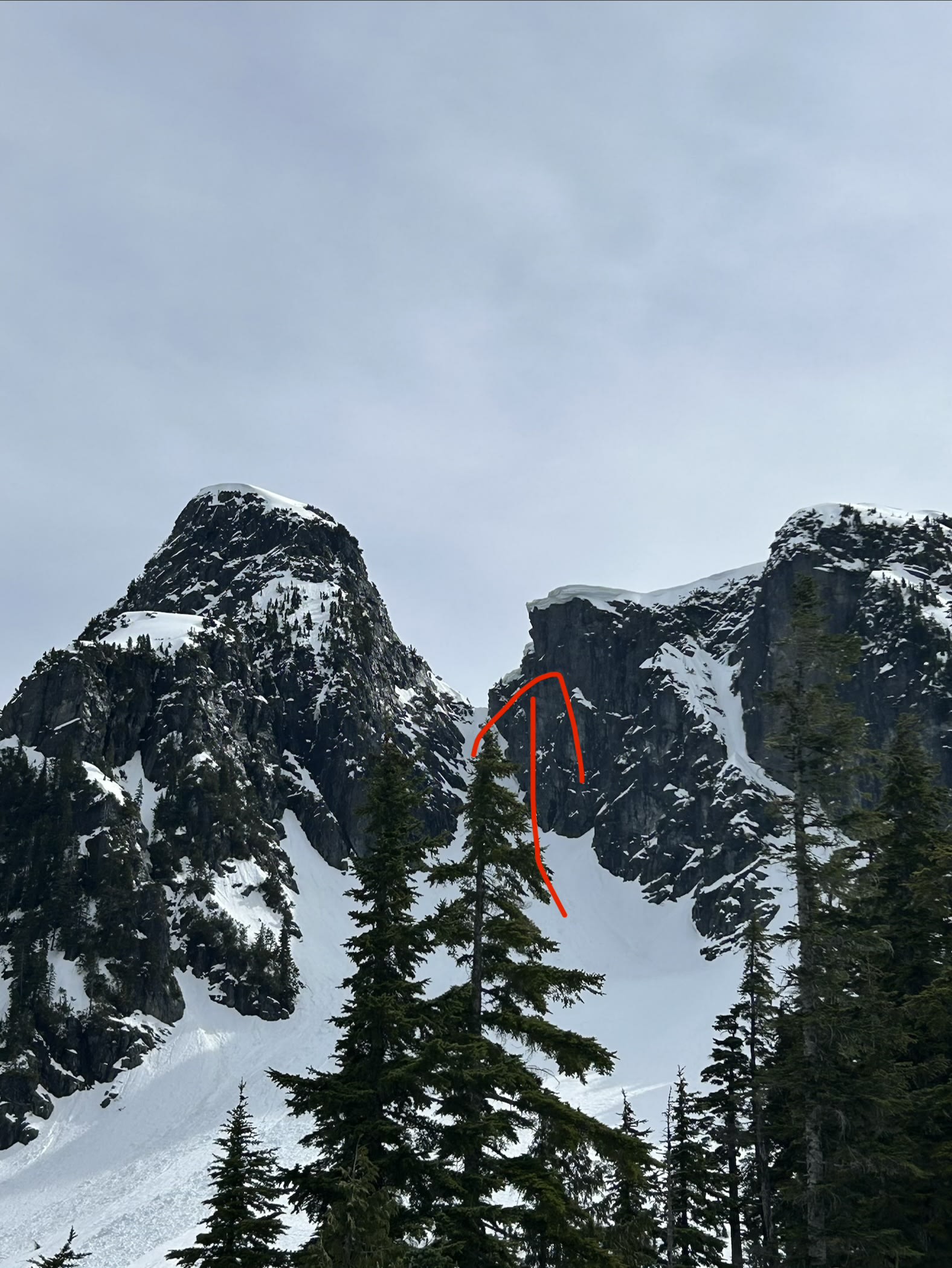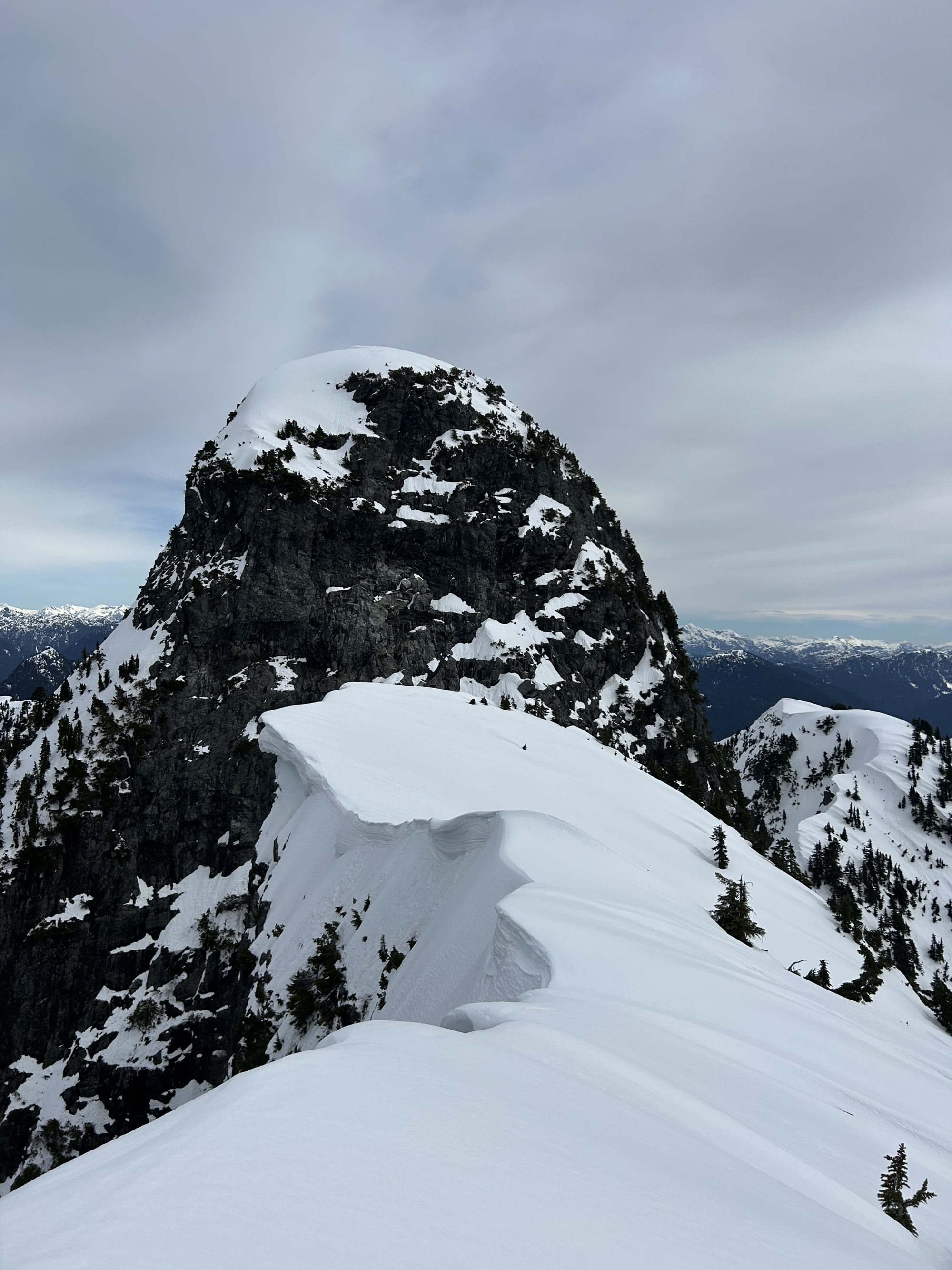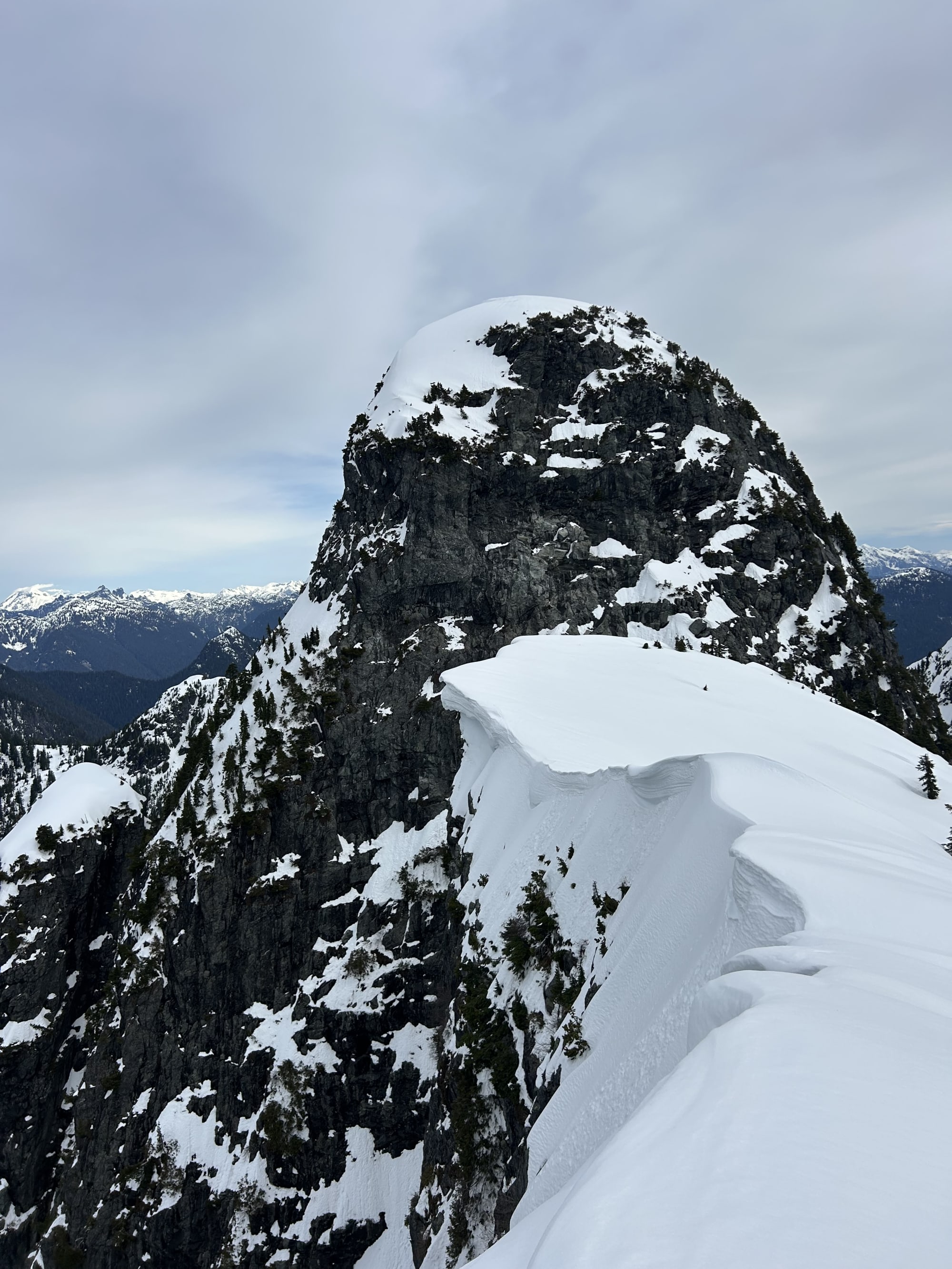 Saw a cornice collapse above the west couloir between the lions and the ridge. for anyone looking climb the west couloir, still many prominent cornices above which will go soon.