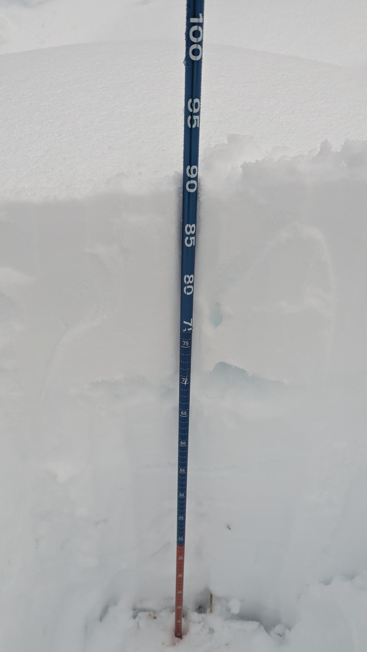 Had to assess the damage from the massive deluge of rain. Snowpack depths ranged from 50cm at 1500m to 90-110cm at 1900m.