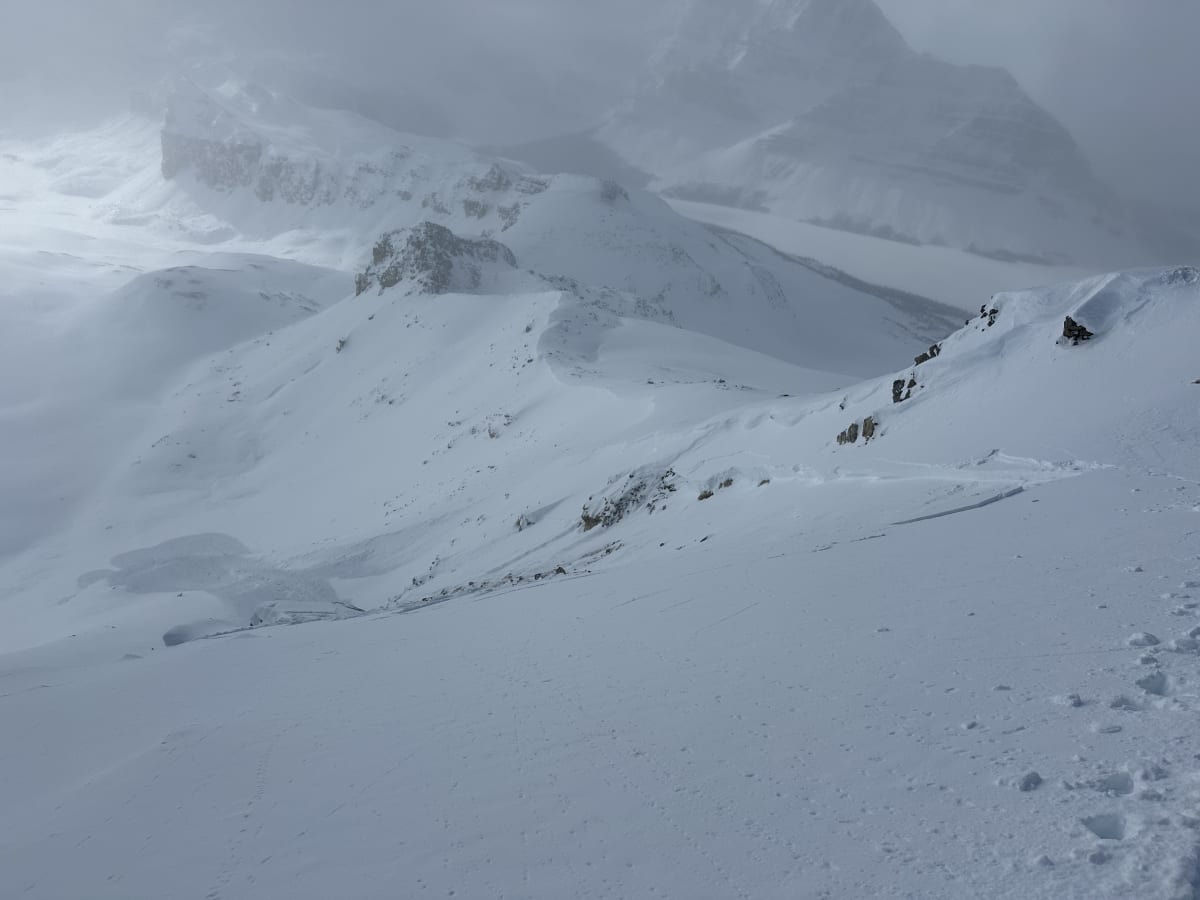Lower on the route between 2300-2700m we also observed shooting cracks and whumpfing in lower angled and wind affected terrain.