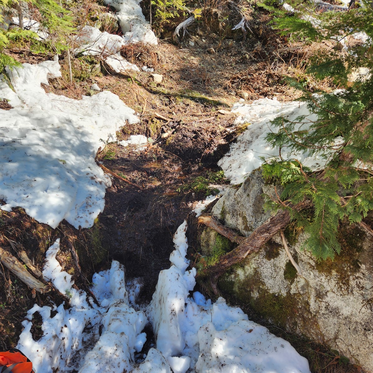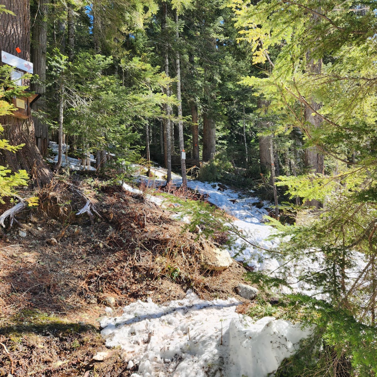 The trail is pretty melted out in places. It's as much hiking as skinning up to and just beyond the pin (where the photos were taken). We called it, asking with one other group and had a picnic instead. 5 or 6 groups are still up there, so assume it got better.