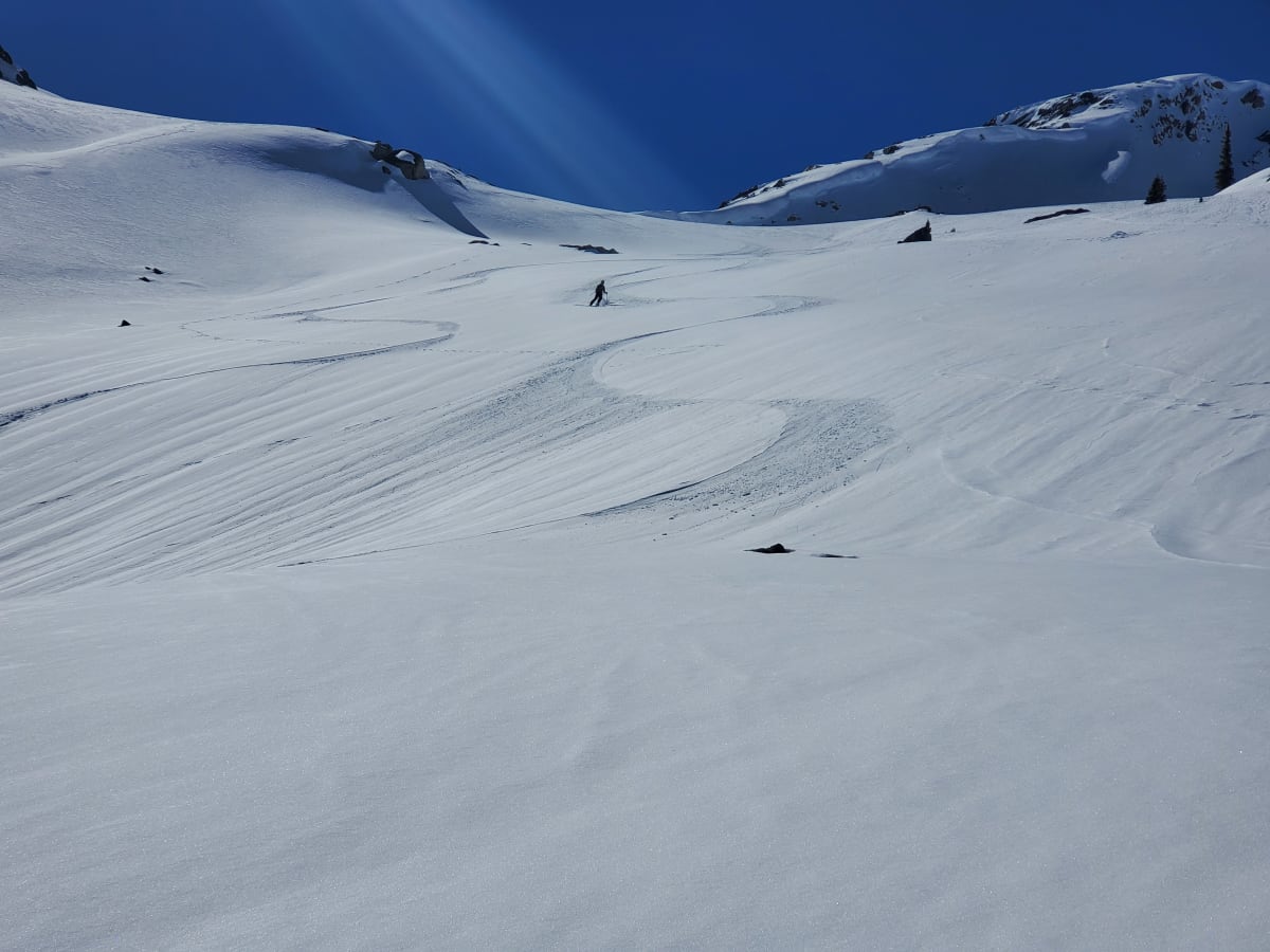 1-2cm of dry snow for much of descent from Lazy Boy back area.
