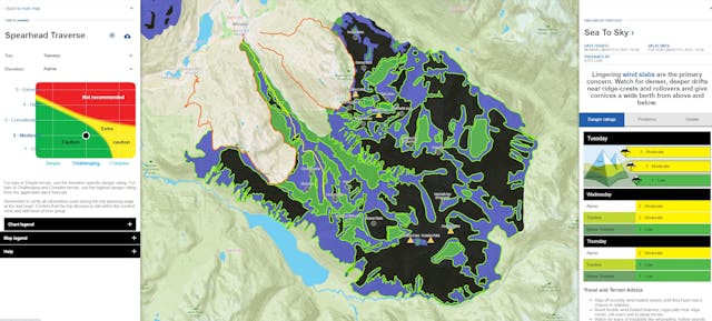 Avalanche Canada’s Online Trip Planner now includes the avalanche terrain ratings for the Spearhead Traverse near Whistler.
