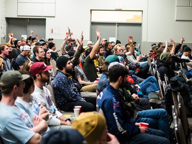 The raffle had 29 prizes, with eight snowboards/splitboards up for grabs—one each from Trapper, Prior, Spline Snowboards, Libtech, Venture Snowboards, Weston Backcountry, Pallas Snowboards, and Chimera. Other prizes included a day of heli-skiing with Eagle Pass, gear from Arc'teryx, The North Face, Intuition Liners, Karakoram, K2, Phantom, and Spark R&D, plus a hut trip from Alpine Club of Canada, accommodation/lift ticket package from Revelstoke Mountain Resort/The Sandman, and tons of other prizes from the event sponsors.